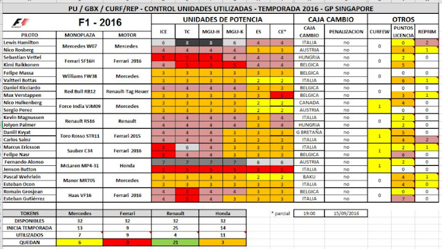 "Però non tutti i mali vengono per nuocere" recita un famoso proverbio italiano. Infatti, la Ferrari ha la possibilità di montare una nuova Power Unit completa a Sebastian Vettel in modo da evitare una penalità che il pilota tedesco avrebbe dovuto scontare tra qualche gara in quanto già a Monza aveva montato il quinto motore endotermico, gruppo compressore e MGU-H (vedi tabella in basso).