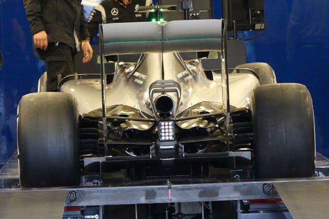 Durante le prove libere verrà testata un'ala anteriore che era stata vista montata sulla W07 anche in Malesia. Come potete osservare dall'immagine in basso la nuova versione di ala della Mercedes prevede dei particolari soffiaggi tra l'endplate e i vari piani dell'ala.