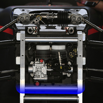 Il problema è che appena i meccanici andavano a montare sulla scocca della RB12 il supporto dei turning vanes, la raggiatura di 25 mm con cui i quattro lati della sezione A-A vanno a raccordarsi non era più rispettata (freccia rossa) per via di due piccole orecchie che andavano ad incanalare aria fresca nell'abitacolo della RB12. Ma essendo quella una parte mobile, i tecnici del team anglo austriaco sono sempre riusciti a dimostrare che la propria cellula di sopravvivenza era completamente in accordo con il regolamento tecnico F1.