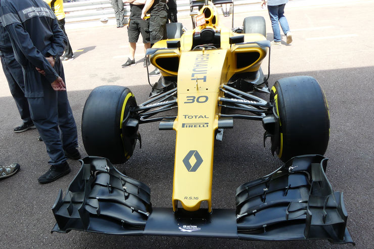 Ma passiamoal sodo, ossia all'analisi tecnica della nuova arma del Team francese. La nuova R.S.17 presenta sicuramente delle forme più aggressive rispetto alle vetture di Williams e Sauber, soprattutto in quella zona dove i Team potranno lavorare molto ossia tra le ruote anteriori e le fiancate dove sono collocati i bargeboards e i deviatori lato pance. Ma ci torneremo.
