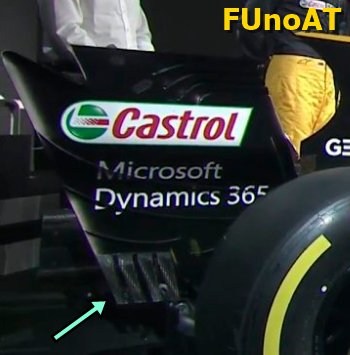 Ancora difficile andare ad analizzare la parte posteriore, soprattutto il diffusore che nella R.S.17 presentata aveva delle cover nelle due parti esterne. Saranno utili le immagini in arrivo da Barcellona la prossima settimana per analizzare dettagliatamente questa zona della vettura.