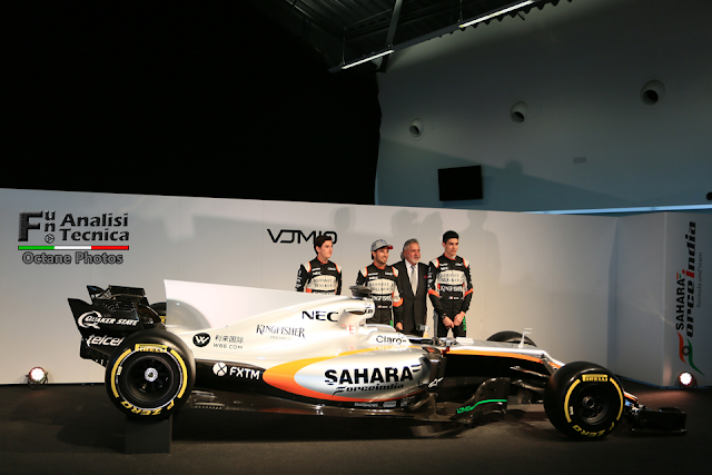Quella progettata da Force India è secondo noi una vettura sicuramente non bella esteticamente, complice anche una livrea piuttosto anonima, ma che comprende alcune soluzioni che possono essere reputate molto interessanti, una su tutte il muso. L'anteriore della VJM10 è sicuramente il miglior anteriore visto finora. Se con grande sorpresa nel 2016 il Team anglo indiano è riuscito a terminare il mondiale costruttori in quarta posizione è giusto che nella presentazione della VJM10 parli di attacco alla top tre, d'altronde si cerca sempre di migliorare no? E a quanto sembra i dati in uscita dal simulatore della vettura 2017 sono parecchio buoni.....