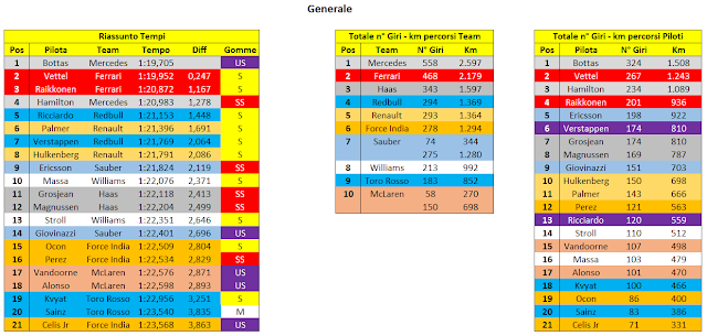 Molto difficilmente lotteranno per la vittoria ma ho visto piuttosto bene la Force India e il Team Haas che potrebbero risultare le due scuderie dietro ai team analizzati in precedenza. Non bene Williams che sembra ancora carente di carico aerodinamico; anche Toro Rosso e Renault (un po meglio della scuderia di Faenza) non mi hanno fatto una grande impressione.