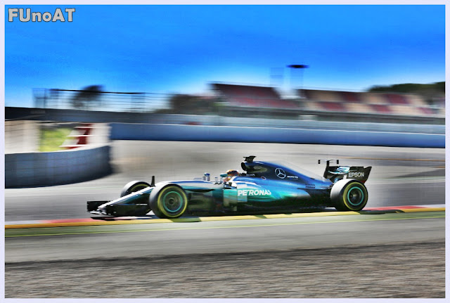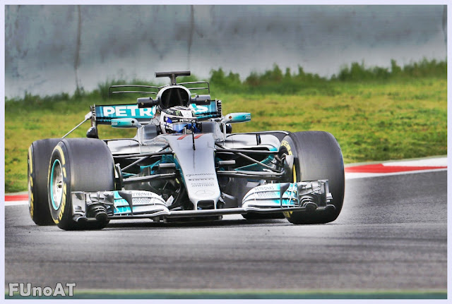 La W08 è apparsa nella prima giornata di prove una vettura molto difficile da inserire in curva (molto sottosterzo) e piuttosto nervosa in uscita quando i due piloti andavano a scaricare la tanta potenza dell'unità motrice tedesca. A quanto capito da FUnoAnalisiTecnica il Team tedesco è arrivato a Barcellona con mappature motore ed assetti non troppo ottimizzati e su cui si è concentrato il grosso del lavoro svolto nei giorni successivi. Lavoro che ha dato i suoi frutti poiché tornando a bordo pista il terzo giorno, ho potuto apprezzare un'altra vettura, quasi perfetta in trazione e notevolmente migliorata in fase di inserimento anche se i problemi di sottosterzo non mi sembravano totalmente risolti. Bottas ma soprattutto Hamilton (visto nella simulazione di gara) riuscivano ad andare molto prima degli altri sul gas in uscita da curva 12, quella che immette verso la Europcar e poi sulla chicane. Nessun grosso problema per la W08 nel percorrere curva 3 completamente in pieno, già dal lunedì mattina cosi come la Ferrari SF70H. Vettura tedesca che mi ha impressionato nella chicane finale (curva 14 e 15) soprattutto con Hamilton che nel terzo giorno la buttava dentro come nessun'altro riusciva a fare: non arrotondava l'ingresso ma puntava direttamente il cordolo, sfruttandolo poi più degli altri, riuscendo anche ad essere molto rapido nel cambio di direzione pur con una vettura a passo lungo che sicuramente non dovrebbe aiutare nei tratti cosi lenti e tortuosi.