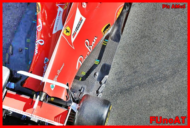 La Ferrari SF70H è scesa in pista nella versione già vista a Fiorano la scorsa settimana con la sola importante novità dell'ala a cucchiaio provata solamente per pochi giri da Sebastian Vettel nella giornata di mercoledì.