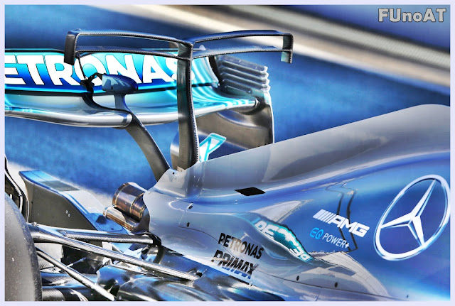Come ci aspettavamo la Mercedes W08 EQPower Plus è apparsa in pista con qualche novità tecnica come la pinna, la doppia T Wing, un nuovo ma semplice monkey seat e nuovi sfoghi di raffreddamento anche se il grosso degli aggiornamenti a quanto abbiamo potuto capire dovrebbe arrivare tra i test della prossima settimana e in parte anche per il primo Gran Premio della stagione. Si parla di un pacchetto da 0.5/0.7 secondi.