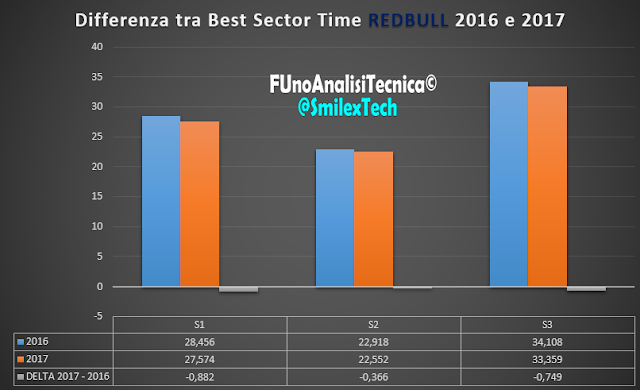 RedBull è il Team che invece ha migliorato più di tutti il secondo settore di Melbourne palesando problemi nell'ultimo settore, quello più guidato, dove la RB13 non riesce ancora a viaggiare su dei binari come faceva invece la RB12.