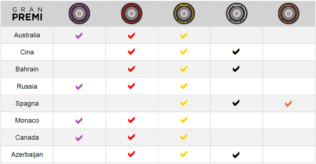 Le mescole scelte da Pirelli per il prossimo Gran Premio di Russia sono di un grado più tenere rispetto a quelle utilizzate dai vari Team nel 2016 ossia la UltraSoft sarà il compound per la qualifica e la SuperSoft e la Soft gli altri due compound utilizzabili in gara. Anche in Russia cosi come in Australia la scelta del numero di set dei vari compound è stata fatta interamente da Pirelli: tutti i Team avranno a disposizione 2 set di Soft, 4 set di SuperSoft e ben 7 di UltraSoft.