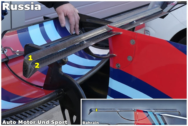 Prima novità anche in casa Williams per il quarto appuntamento stagionale: la T Wing principale ha ora due piani e una soffiatura centrale.