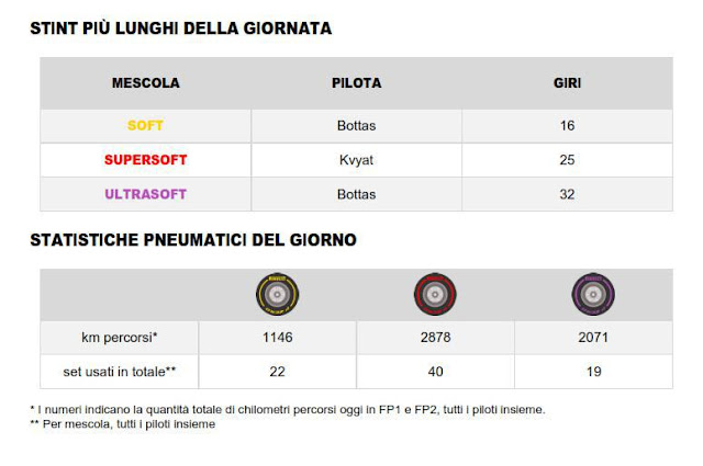 MARIO ISOLA - RESPONSABILE CAR RACING “C’è una differenza di circa un secondo tra ciascuna mescola, in linea con l’obiettivo che avevamo fissato all’inizio dell’anno. Per la qualifica e la gara ci aspettiamo l’utilizzo soprattutto di supersoft e ultrasoft. Anche se l’asfalto è leggermente più abrasivo rispetto allo scorso anno, come risultato della normale evoluzione della pista, risulta essere ancora molto liscio e scivoloso, il che mantiene basso il livello di degrado. Possiamo quindi prevedere una gara orientata ad una sola sosta, con partenza su ultrasoft e cambio poi per la supersoft”.