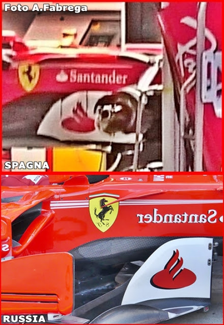Come potete osservare dal confronto in basso, sono state aggiunte delle soffiature nella parte superiore dei bargeboards. Modifica finalizzata al miglioramento dell'efficienza aerodinamica grazie alle soffiature che vanno ad energizzare il flusso d'aria diretto verso il posteriore.