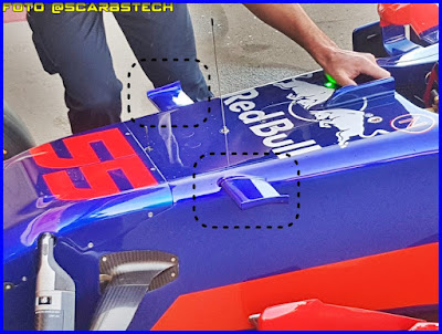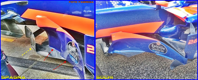 Per quanto riguarda Toro Rosso, dopo aver analizzato nella mattinata odierna la nuova ala anteriore modificata nella zona interna dove si stacca l'importante vortice chiamato Y250, possiamo mettere in evidenza altre interessanti novità.