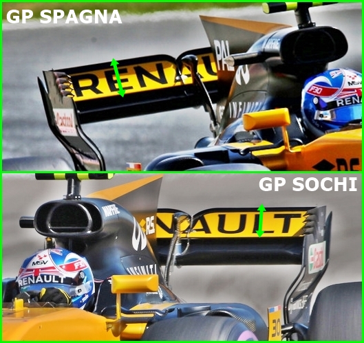 Per adattare la vettura alle caratteristiche della pista di Barcellona, Renault ha portato in Spagna una nuova ala posteriore con un aumento della corda del flap mobile nonché un gurney flap molto più accentuato. Modifica che ha permesso alla RS17 di lavorare meglio sugli pneumatici ma che ha tolto qualche km/h sul dritto. Da notare anche un profilo di ingresso del mainplane maggiormente rettilineo e non più con minor sezione nella parte esterna e centrale.