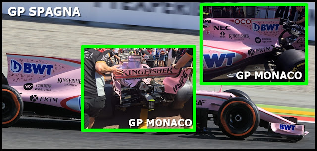 La Force India era tra le poche vetture a non aver montato nessuna appendice aerodinamica all'estremità della pinna dorsale. Sul tracciato cittadino di Monaco, come ben sappiamo, il carico deportante è fondamentale e, proprio per questo motivo, gli aerodinamici del team anglo-indiano hanno studiato una versione molto particolare della loro T-Wing.