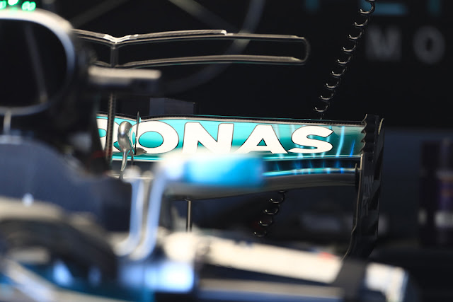 Mercedes durante i test invernali e nelle prime gare della stagione aveva utilizzato al posteriore un'ala posteriore a "cucchiaio" non seguendo la linea della Ferrari che, fin da inizio stagione, aveva optato per un'ala da alto carico.