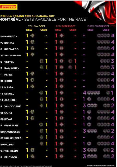 Sarà fondamentale la partenza e la strategia che i vari Team cercheranno di adottare considerando che Pirelli si aspetta l'utilizzo da parte di qualche Top Team del compound più duro portato, ossia la Soft. Nella giornata odierna a Montreal si sfioreranno i 30°C di temperatura ambientale con la pista che, in base alla nuvolosità presente nel cielo di Montreal potrà superare anche i 50°C. Ci sarà quindi un fattore in più da considerare per i vari Team, ossia il degrado (termico, soprattutto sulle posteriori) delle mescole più morbide, Low Working Range contro l'High Working Range della Soft. Una Soft che Mercedes e RedBull hanno nuova mentre Ferrari "usata" (in realtà solo rodata).