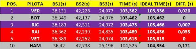 In casa Mercedes dopo il positivo fine settimana canadese le cose non stanno andando nel migliore dei modi. Se Bottas ha dimostrato di essere competitivo la stessa cosa non si può dire di Hamilton che, in entrambi le sessioni, è stato piuttosto anonimo. Il pilota inglese sta faticando a portare al limite la propria vettura e non è riuscito a realizzare un buon giro con le gomme da qualifica. I suoi intertempi, se confrontati con quelli dei suoi competitors, non sono per niente buoni. Mercedes che dovrà lavorare molto duramene sul setup meccanico ed aerodinamico di Hamilton per farlo ritornare nelle posizioni di testa.Nella simulazione di gara i vari top team hanno girato tutti con le SuperSoft (gomme da qualifica) ad esclusione di Raikkonen che ha utilizzato la Soft. Vettel e Verstappen, nel secondo stint, hanno girato con la mescola "gialla".
