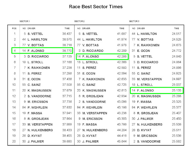 Nell'enorme caos del nono appuntamento stagionale c'è sicuramente da far notare che Fernando Alonso è riuscito a portare a Woking i primi punti della stagione per il Team McLaren Honda. Un pacchetto Mclaren Honda 2017 che anche a Baku ha mostrato i suoi grossi limiti per colpa principalmente di una Power Unit Honda sempre carente soprattutto sul lato endotermico. Analizzando gli intertempi, realizzati da Fernando Alonso in gara, si nota chiaramente che, solo nell'ultimo settore, la McLaren pagava oltre 6 decimi dai migliori, mentre, nei primi due, molto più lenti e guidati, dove è importante il carico aerodinamico ed il grip meccanico, la MCL32 era tra le vetture più competitiva.