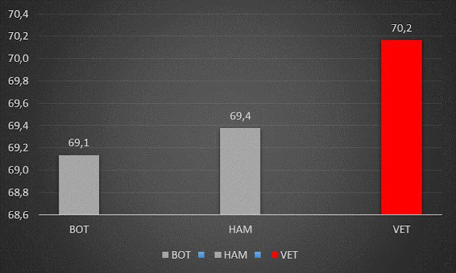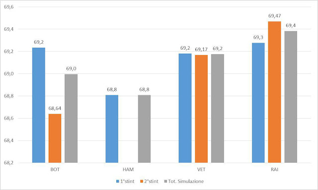 Si nota una Ferrari che più lenta di circa un decimo e mezzo rispetto alla miglior Mercedes nel settore più veloce della pista mentre gli rimane incollata agli scarichi nei successivi due settori, più guidati. Da segnalare che come dal primo appuntamento a questa parte, Mercedes sta scendendo in pista con un assetto aerodinamico sempre più scarico rispetto a quello delle Ferrari SF70H. Si confrontano una vettura molto complessa e estremamente efficiente dal punto di vista aerodinamico come la Mercedes e una vettura con concetti aerodinamici più convenzionali (tranne la parte iniziale delle pance, soluzione piuttosto innovativa ma da alto drag) e nata meglio soprattutto nella gestione degli pneumatici.