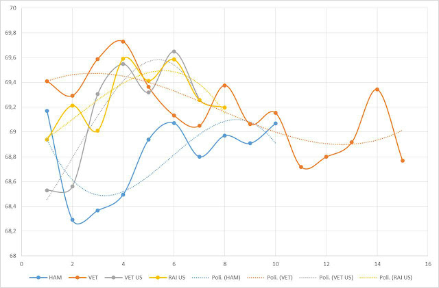Per concludere questa prima parte dell'articolo, solo per vostra informazione vi mostriamo i passi gara che i due piloti Mercedes (su Soft Hamilton, su SuperSoft Bottas) e Sebastian Vettel (SuperSoft) hanno fatto registrare negli ultimi minuti di FP1. Passi gara sicuramente meno indicativi di quello che andremo ad analizzare tra poco.