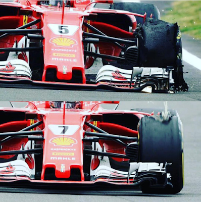 Attendendo informazioni più dettagliate dalle analisi odierne di Pirelli, penso sia chiaro che le tempistiche sui problemi avuti da entrambe le Ferrari (e dalla RedBull di Max Verstappen) siano state chiaramente causali. I problemi sono completamente slegati pur essendo relativi allo stesso pneumatico, il più sollecitato sul circuito di Silverstone che in questa edizione 2017 ha dovuto resistere a forze centrifughe del 10% più elevate rispetto alla stagione passata.