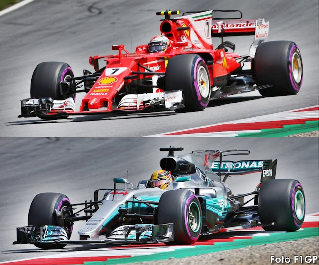 Il Team italiano scende in pista nelle FP1 con un'ala da medio alto carico al posteriore accoppiata al doppio monkey seat e anche alla C Wing sulla SF70H di Kimi Raikkonen. Un assetto aerodinamico utile anche a limitare quei problemi nati dalla chiusura, per via di un chiarimento FIA nel pre Austria, del "coltello" (o deflettore mobile) nella parte iniziale del fondo della SF70H. Un componente che ad occhio sembrerebbe poco importante ai fini aerodinamici della vettura ma che in realtà aiutava a "sigillare" esternamente il fondo delle SF70H che adottano da quest'anno assetti ad alto angolo di rake. Senza la "sigillatura" originale per cui era stato pensato di lavorare al 100% il fondo, la Ferrari è stata costretta a diminuire leggermente l'angolo rake sulla propria SF70H per evitare importanti perdite aerodinamiche. Ma questo ha comportato comunque una perdita (più contenuta) di carico al posteriore che Ferrari ha voluto recuperare adottando un'ala più carica. Ma tale assetto aerodinamico portato in pista durante le PL1 non ha funzionato poiché la differenza di velocità soprattutto con Mercedes era troppo importante. Con una Ferrari che ha poi optato per l'assetto più scarico dei tre provati durante il fine settimana.