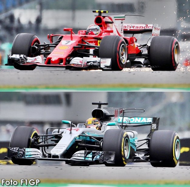 Se si guardano gli assetti aerodinamici scelti da Ferrari e Mercedes per il GP di Silverstone, non si notano grandi differenze rispetto a quelli utilizzati in Canada. Ma se in Canada la Ferrari sul dritto andava più forte di Mercedes (1 decimo in 13 secondi di allungo), a Silverstone, su rettilinei ben più corti del lungo dritto presente nel terzo settore di Montreal, la Ferrari andava addirittura più piano; non molto, ma comunque 1 decimo se si somma il gap perso nei due rettilinei principali. Secondo le nostre informazioni il vantaggio motoristico che aveva la Ferrari in Canada è stato completamente cancellato principalmente dalla Direttiva Tecnica 4 sull'utilizzo dell'olio come combustibile e solamente in parte del miglior aggiornamento portato dalla Mercedes sul circuito di casa.
