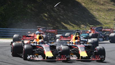 Analizzando i video, i commissari hanno stabilito che Verstappen si sia inserito in curva 2 con una velocità troppo elevata per cercare di difendersi dall'attacco di Ricciardo; ha bloccato la gomma anteriore destra ed ha successivamente impattato con la vettura del compagno di squadra.