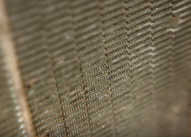 Nelle due prossime due fotografie sono ben evidenti questi microtubi, oltre 16000, che garantiscono elevati coefficienti di scambio termico, fino a 60 volte superiore rispetto agli scambiatori di calore convenzionali.