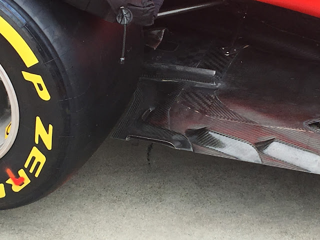 Passando alla parte centrale della monoposto italiana, confermate le modifiche al fondo nella zona anteriore alle ruote posteriori portate in pista per la prima volta in Belgio la scorsa settimana.