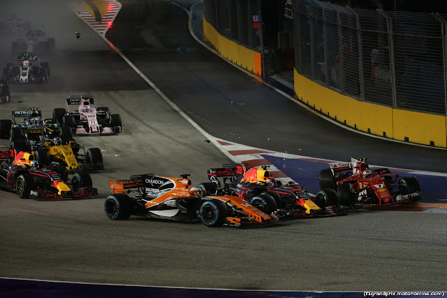 Mad Max. Voto: 4. Forse (e dico forse) il meno colpevole nella domenica di follia. Il meno colpevole nel senso che il ragazzino ormai sa benissimo che può sempre partire facendo il bullo, incolume delle conseguenze. D'altronde aveva già eliminato pure il compagno di squadra a Budapest. Purtroppo se hai Mad Max al tuo fianco devi sapere che lui non mollerà un centimetro. E’ una questione di neuroni. In quella parte del cervello gli mancano. Tra l’altro lo aveva pure annunciato in mondovisione cosa avrebbe fatto, nella conferenza stampa post qualifiche. Il fatto è che spesso quel “centimetro” fa la differenza fra l’essere temerario e l’essere un “beep” (metteteci voi l’aggettivo). Max sembra quasi godere a far fuori le Ferrari (al netto del fatto che l’incidente è una concausa di tutti e tre i piloti succitati): cosa ribadita dopo la gara. Una cosa è certa. Non c’è incidente al via in cui lui non sia presente. Prima o poi gli capiterà (glielo auguro di cuore) di perdere un mondiale perché qualcuno lo avrà sbattuto fuori con l’atteggiamento mentale del “o la va o la spacca tanto io non ci perdo niente”.