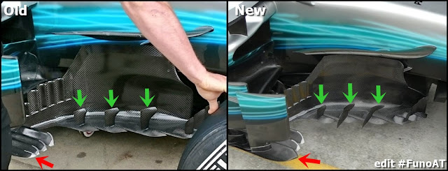 Queste modifiche denotano un grosso lavoro di affinamento che gli ingegneri Mercedes stanno portando aventi sul progetto 2017 per cercare di migliorare ulteriormente il flusso diretto verso il fondo vettura. Ricordiamo che su queste vetture 2017 è ancora più fondamentale alimentare correttamente (con flusso molto energetico) il diffusore posteriore poiché significa riuscire a ridurre di qualche punto la resistenza all'avanzamento, il vero tallone d'Achille di queste F1 2017.
