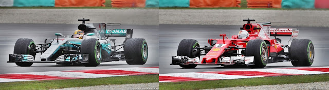 Per quanto riguarda Ferrari, nella giornata odierna e nelle prossime due giornate non verrà utilizzato il quarto motore endotermico, pur presente nei box di Sepang, poiché il Team italiano ha deciso nelle ultime ore che in un circuito come quello malese, dove i CV hanno medio bassa importanza percentualmente nel tempo sul giro, non è fondamentale l'utilizzo di un motore endotermico nuovo (essendo poi un aggiornamento minore). Confermate su entrambe le vetture le orecchie introdotte a lato dell'airbox che hanno permesso al Team italiano di spostare del peso in una posizione più arretrata e qualche cm più in basso (con benefici sul baricentro della SF70H). Confermati anche i nuovi bargeboard, installati all'inizio delle seconde prove libere anche sulla SF70H di Kimi Raikkonen.