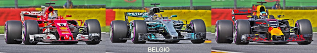 Se confrontiamo gli assetti aerodinamici con cui i tre Top Team sono scesi in pista nella giornata odierna rispetto a quelli utilizzati a Spa, su un circuito simile come caratteristiche tecniche, si può notare come Vettel sia rimasto su una configurazione simile mentre sia Mercedes che RedBull (in pista con due configurazioni aerodinamiche differenti) hanno caricato molto il posteriore. Per quanto riguarda il Team anglo austriaco, assetto molto carico significa pagare dazio nell'ultima parte del secondo settore e soprattutto nel terzo. Con una RedBull che comunque, un pò come la SF70H, non è stata all'altezza della Mercedes W08 nemmeno nei curvoni veloci del primo settore.