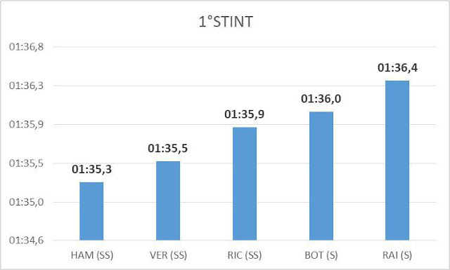 Nella seconda parte di gara la Red Bull è stata la vettura più veloce tra quelli che montavano le soft. Tra i piloti analizzati, Bottas è stato quello che è riuscito ad avere il miglior ritmo ma, così come Raikkonen, stava utilizzando le gomme più prestazionali, ossia il compound SuperSoft.