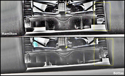 Ciò che ha avuto Lewis Hamilton durante il Gran Premio del Messico vista la mancanza degli archetti esterni che hanno il compito di allontanare la scia dello pneumatico posteriore dal flusso in uscita dal diffusore. Mancando, sono state importanti le perdite di carico aerodinamico nella parte posteriore destra dalla vettura che hanno ovviamente sbilanciato anche il "comportamento aerodinamico" della sua W08.
