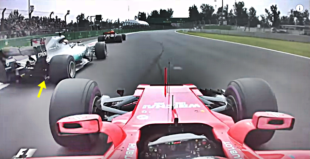 Facendo un piccolo passo indietro, stiamo parlando del danno al diffusore subito da Lewis Hamilton nel corso del primo giro del Gran Premio del Messico. C'è subito da sottolineare che il danno non è stato causato direttamente dal contatto con Sebastian Vettel ma solo successivamente, per via della conseguente foratura alla posteriore destra generata dal contatto con il pilota tedesco della Ferrari.