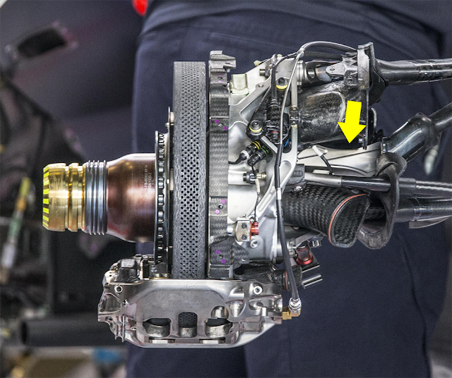 Importante lavoro anche in casa RedBull principalmente nella prima sessione di libere odierne, tanto da un punto di vista aerodinamico (nuova ala anteriore) come la scuderia Ferrari, quanto da quello meccanico con il Team anglo austriaco che ha provato nuovamente la sospensione anteriore dotata del prolungamento in titanio sul push rod anteriore. Modifica testata per la prima volta da Max Verstappen nel Gran Premio della Malesia e poi accantonata per qualche Gran Premio.