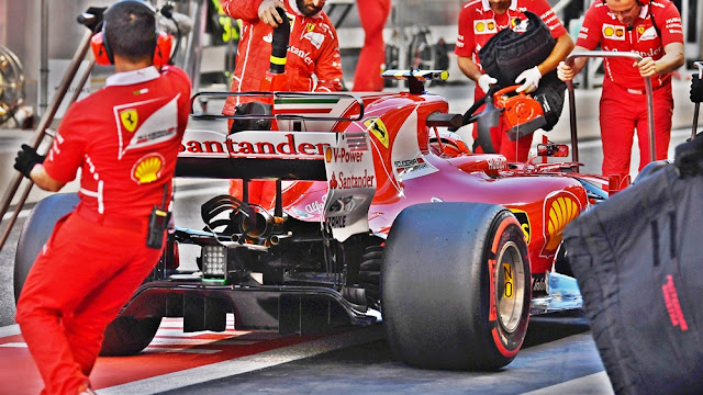Il Team più atteso in questo venerdì di Abu Dhabi era sicuramente la Ferrari vista l'importante novità portata dal Team italiano sul retrotreno della SF70H. Chi non fosse passato da queste parti nella giornata di ieri deve sapere che la Ferrari è intervenuta in modo pesante su una parte molto delicata della SF70H (per maggiori informazioni consigliamo la lettura di questo articolo) ossia la parte esterna del diffusore. Nella specifica di diffusore montata sulla SF70H numero 7 si può notare come il diffusore si sviluppi in tutta la larghezza del retrotreno della vettura.