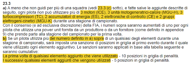 Per quanto riguarda gli articoli, le maggiori novità si trovano all'articolo 23, dove vengono indicati i nuovi limiti di utilizzo della power unit: