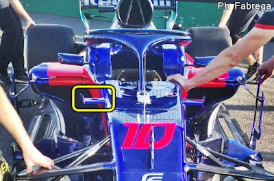 Il Team Toro Rosso ha mostrato nella Pit Lane di Melbourne una aerodinamica evoluta attorno al nuovo componente di sicurezza montato sui telai delle vetture 2018 di Formula ossia l'Halo. Componenti aerodinamiche che la FIA ha permesso di installare entro i 20 mm dall'anello con il Team con sede a Faenza che è stato il primo a sfruttarli tutti, non solo quelli nella parte superiore.