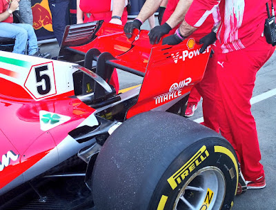 Se analizziamo l'immagine in alto possiamo notare che quella in basso è la versione che è stata montata sulla SF71-H fin dal giorno della presentazione ed utilizzata per tutte le 8 sessioni di test invernali. Quella in alto, invece, è una versione similare a quella utilizzata sulla SF70H nelle ultime gare stagionali.
