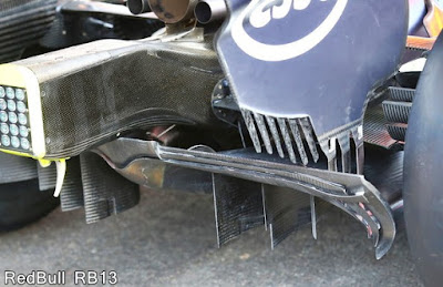 Con questa novità il Team italiano ha portato in pista una parte esterna del diffusore praticamente simile, se non identica, a quella utilizzata dalla RedBull la scorsa stagione come si può ben vedere dall'immagine in basso.