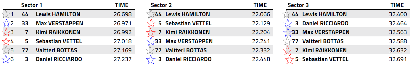 Partendo dal giro 24, ossia quando Ricciardo stava girando nel traffico, i riscontri cronometrici ne sono la chiara dimostrazione con tempi nettamente più alti rispetto a quelli di Vettel ed Hamilton. Al giro successivo, grazie al pit stop del pilota che lo precedeva, ha potuto girare finalmente in aria libera e il tempo realizzato si è abbassato di ben 1.2 secondi, qualche decimi più veloce di Hamilton e Raikkonen anche se il compound utilizzato era differente.