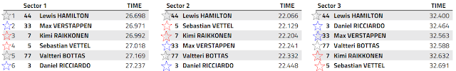 Passando alla gara, se analizziamo con attenzione tutti i dati emersi, possiamo notare che, a differenza di quello che è sembrato, la Red Bull RB14 è stata molto molto competitiva. Ricciardo ha girato pochissimi giri senza avere del traffico davanti ed andando ad isolare questi frangenti possiamo notare che il ritmo del pilota australiano era molto buono.