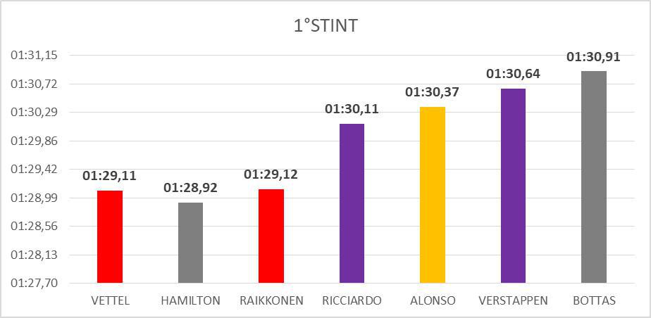 Passando alla gara, ci siamo già soffermati ampiamente nelle ore successive al Gran Premio sulla strategia vincente utilizzata dal Team italiano, meno per quanto riguarda i passi gara dei due piloti della rossa.