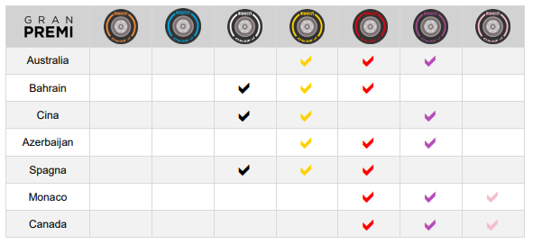 Le mescole scelte da Pirelli per il Gran Premio di Bahrain saranno le stesse utilizzate dai vari Team nel 2017 ossia la SuperSoft sarà il compound per la qualifica e la Soft e la Medium gli altri due compound utilizzabili. Nessuna importante differenza sulla scelta del numero di set dei vari compound da parte dei Team come possiamo vedere dalla prossima immagine; tutti i Top Team avranno a disposizione 2 set di Medium (tranne Hamilton), 4 set di Soft (tranne Bottas) e ben 7 di SuperSoft.