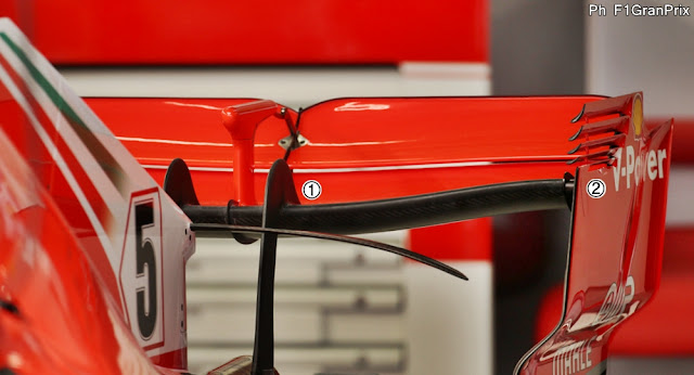 Sugli endplate le soffiature nella parte alta sono diventate cinque (2) ma, a differenza dell'ala in versione "classica", nella nuova versione quattro sono completamente aperte rispetto al bordo d'ingresso mentre quella più in basso è ancora chiusa.