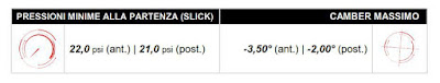 Ricordiamo che la UltraSoft e la SuperSoft sono compound Low Working Range (90-110°C), più facili da portare in temperatura ma più facili anche da "surriscaldare", soprattutto le posteriori, o raffreddare, soprattutto le anteriori, mentre la Soft è una mescola High Working Range con un area di lavoro più "alta" in termini di temperature (105-135°C).