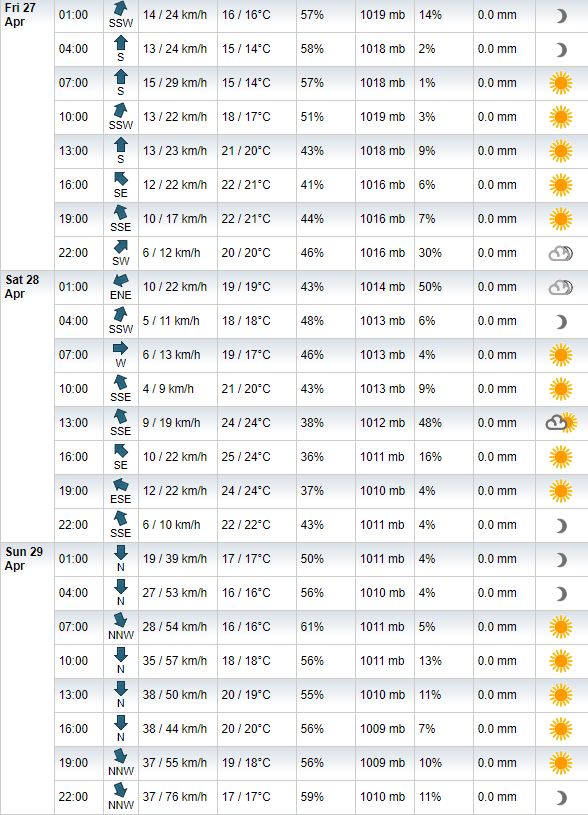 A livello meteo c'è ben poco da dire poiché quello di Baku sarà un weekend piuttosto caldo (per le medie del periodo) considerando che verrà corso circa due mesi prima della collocazione 2017 dove era l'ottavo appuntamento. Se la giornata di sabato sarà molto probabilmente la più calda del weekend azero, quella di domenica sarà la più ventosa con l'asfalto che potrà toccare temperature sopra i 30°C.